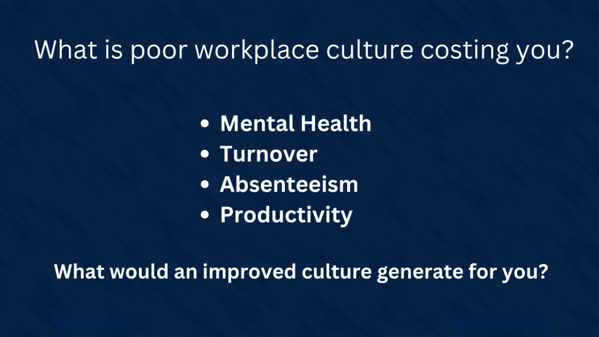 These places have massive competitive disadvantages. They lose productivity and profitability. They have poor customer service, lots of absenteeism, and are followers, playing catch-up to the companies that truly innovate.