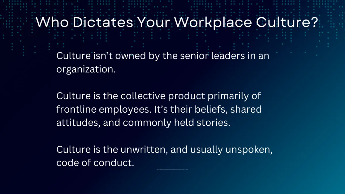 Workplace culture is your key to exceptional success in business. In fact, culture is equally important as strategic vision, effective business processes, and your value proposition. This book provides a road map to optimal culture. It tells you how to create one that truly sets your organization apart.