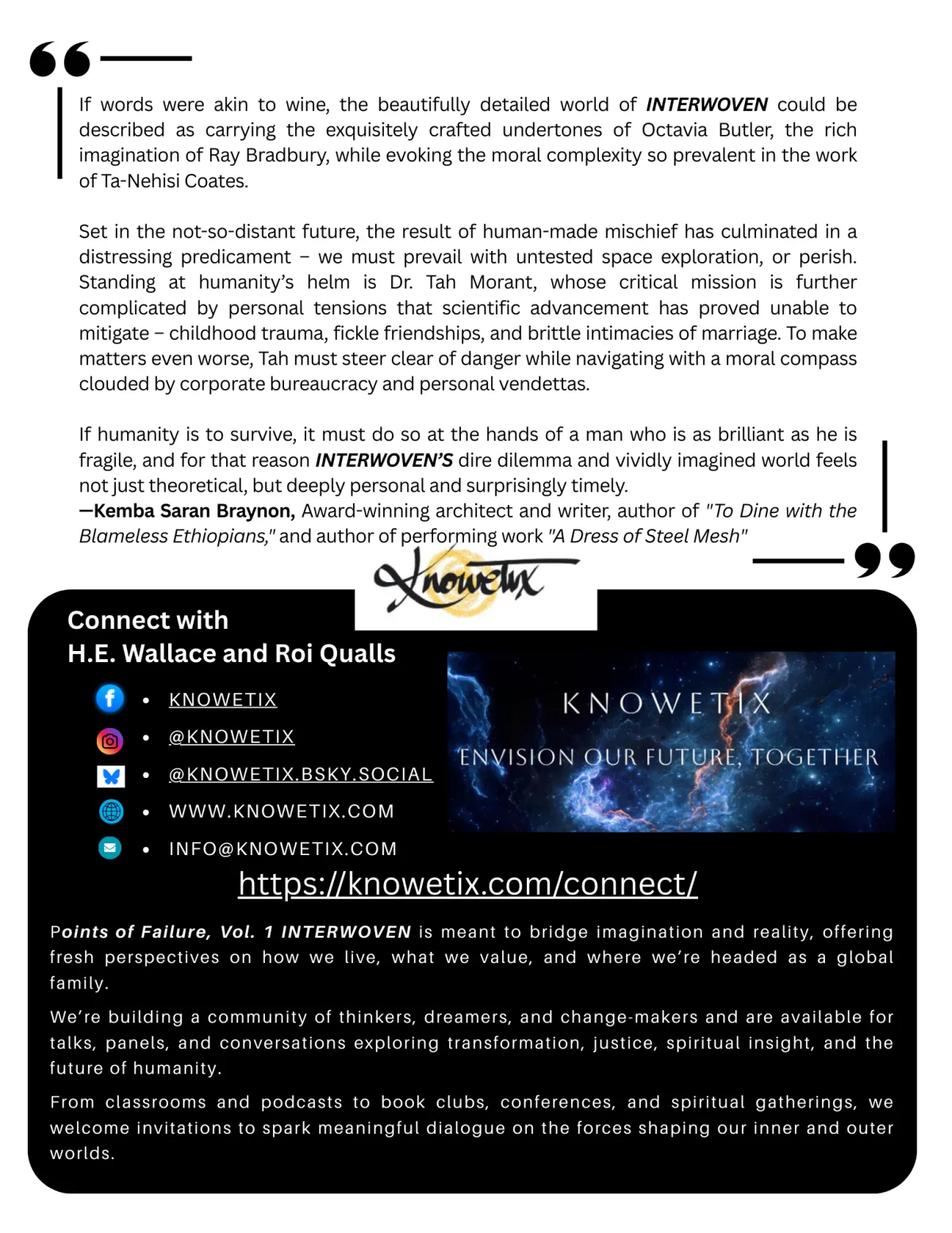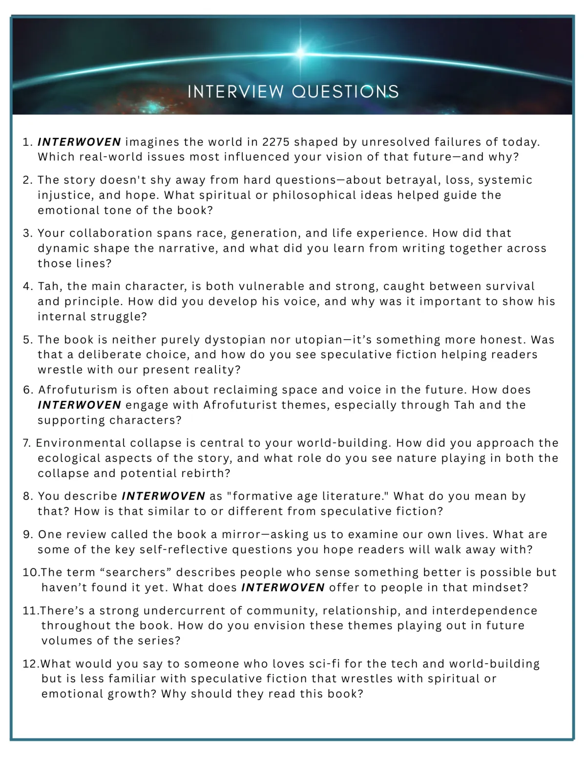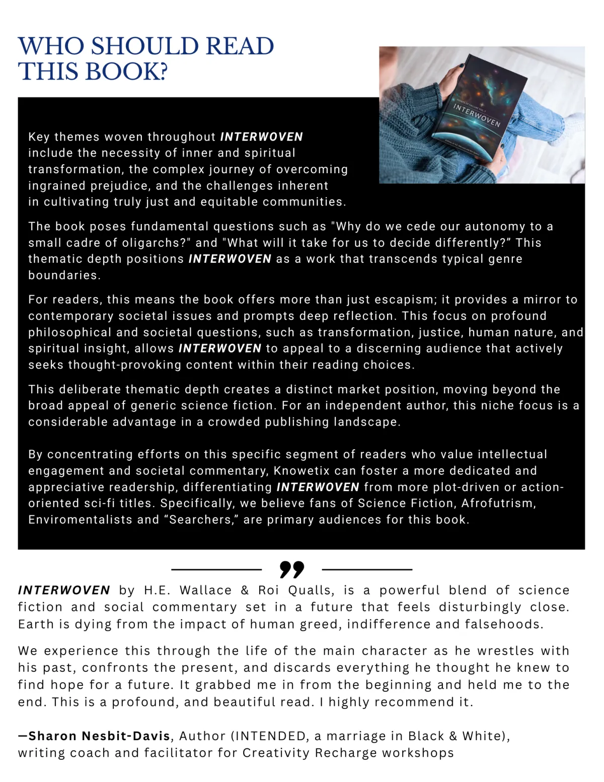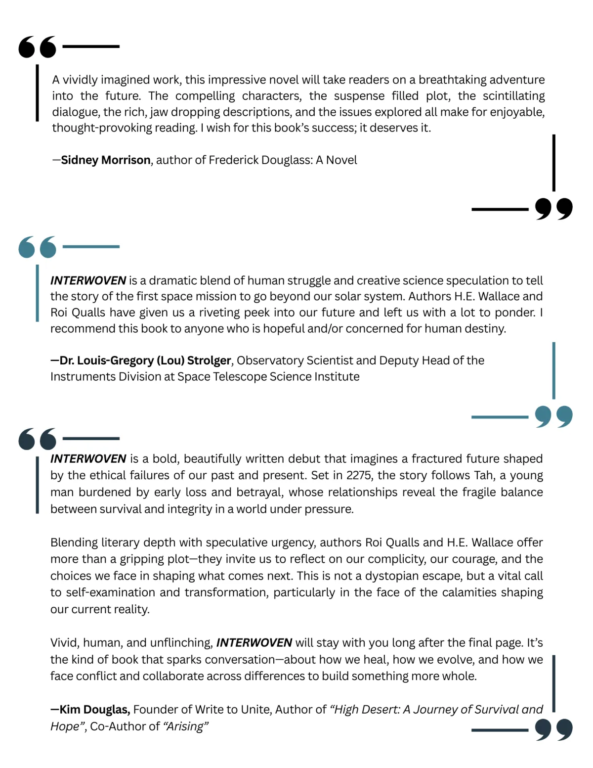 "This ambitious and wildly creative – but not quite post-apocalyptic - first novel takes many unforeseen twists and turns. There’s been no single devastating event – there have just been too many years of unreconstructed human behavior, and now humanity needs to find a new place to live. This novel follows the life of one scientist, Dr. Tah Morant, on his quest to save his family, his career, and not incidentally, the future of the human race. It leads him to places – and possibly, to conclusions – that he never expected, and the story keeps us guessing until the end. I absolutely loved the closing chapter of this book, and I think all sci fi fans will all agree that it is perfect, and perfectly satisfying. A fun read!"